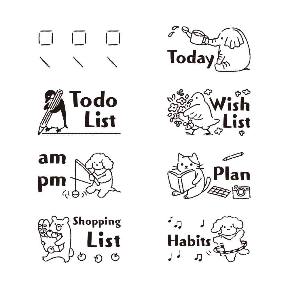 ノートやダイアリーの記録を楽しむためのスタンプです。インキパッド付きなのでスタンプ台は不要。