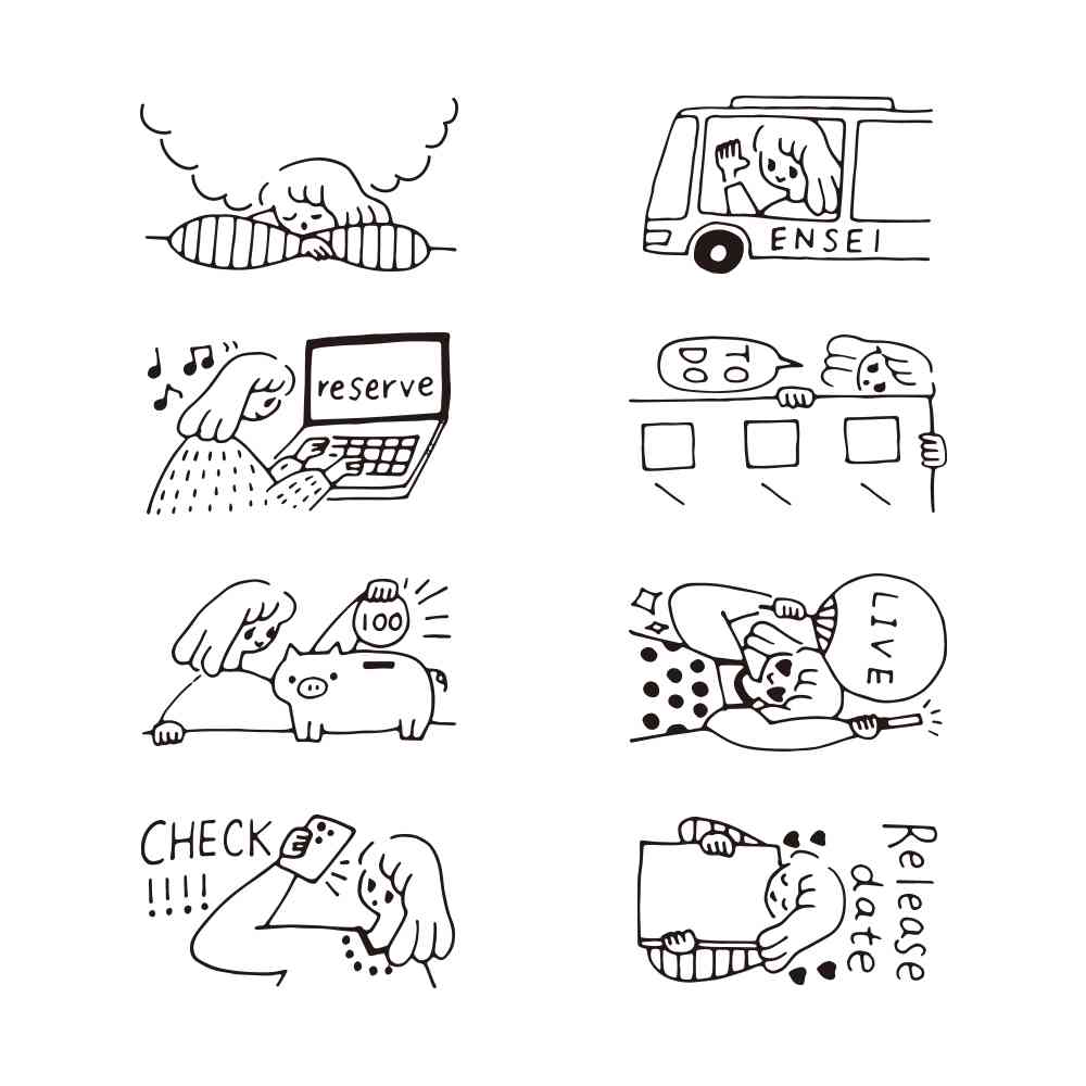 トレンドの「推し活」をテーマに、その一連の行動シーンを柄におこしました。