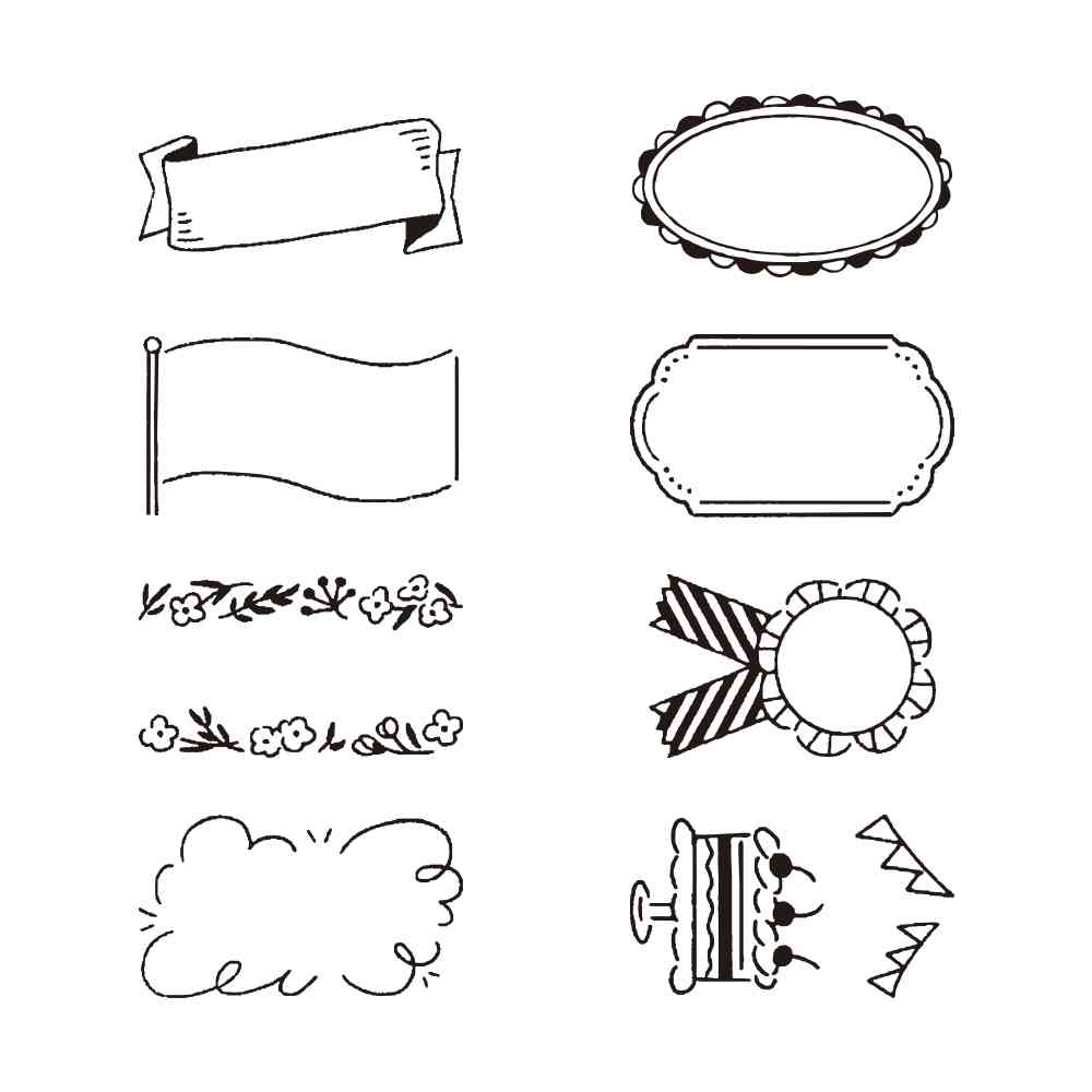 「飾り」でタイトルを囲んだり、記念日を彩るなど、楽しく使いやすい飾りを集めたデザインです。