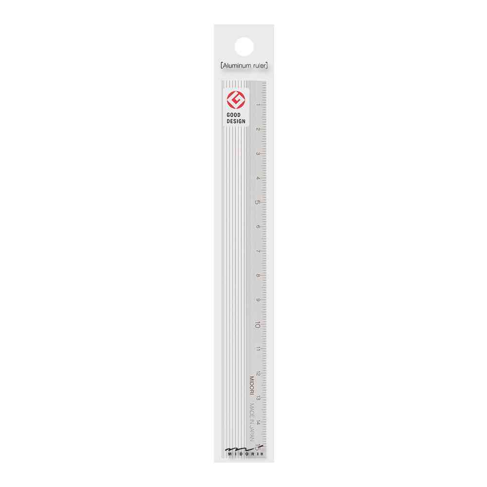 カッターにも強いアルミ製の、シンプルな15cm定規。