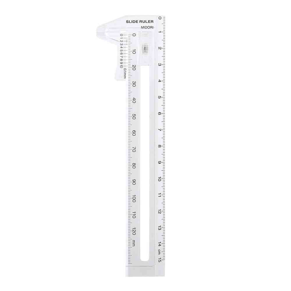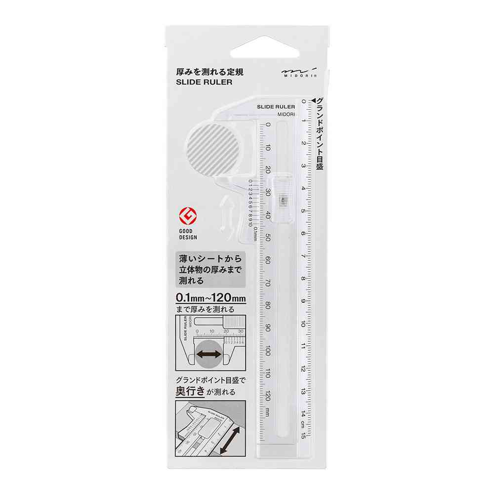 プロのツールよりもっと手軽に、薄いシートから立体物の厚みまで測定できる定規です。