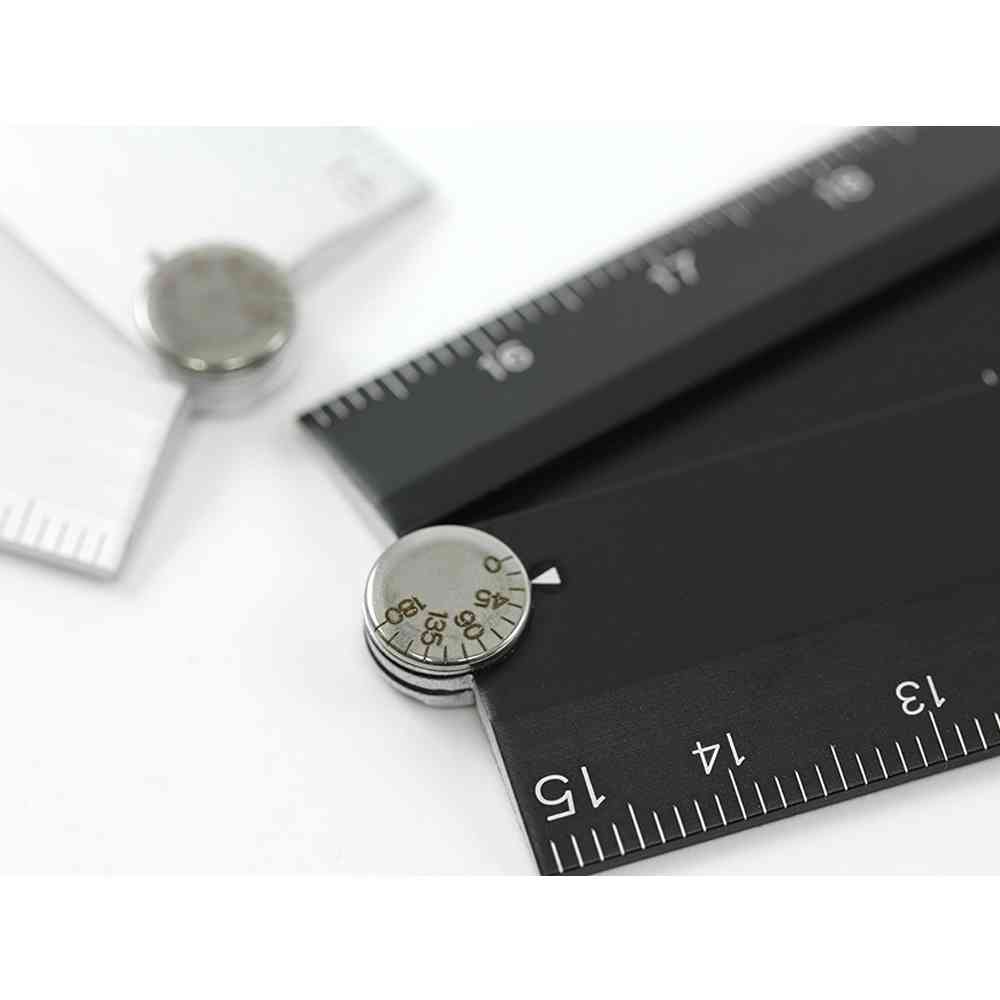 中心軸には角度表示があり、15度ごとの角度測定機能もついています。