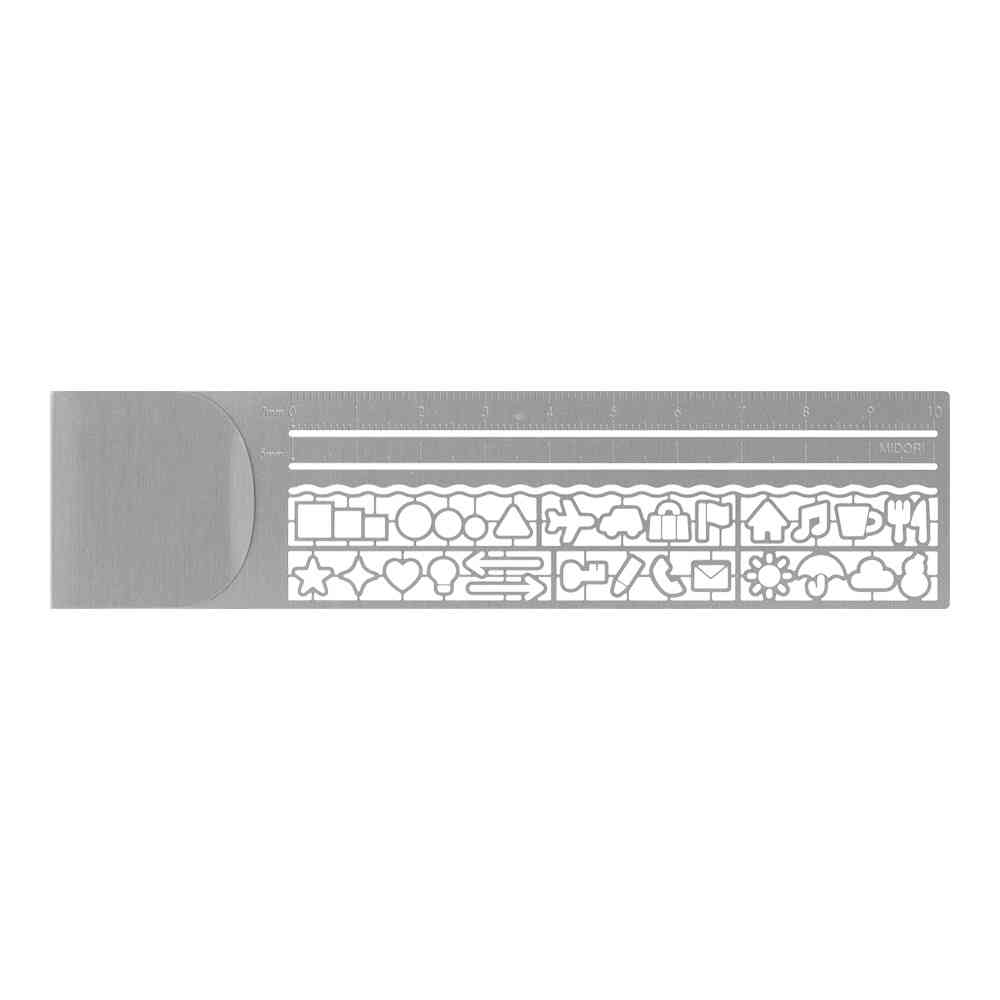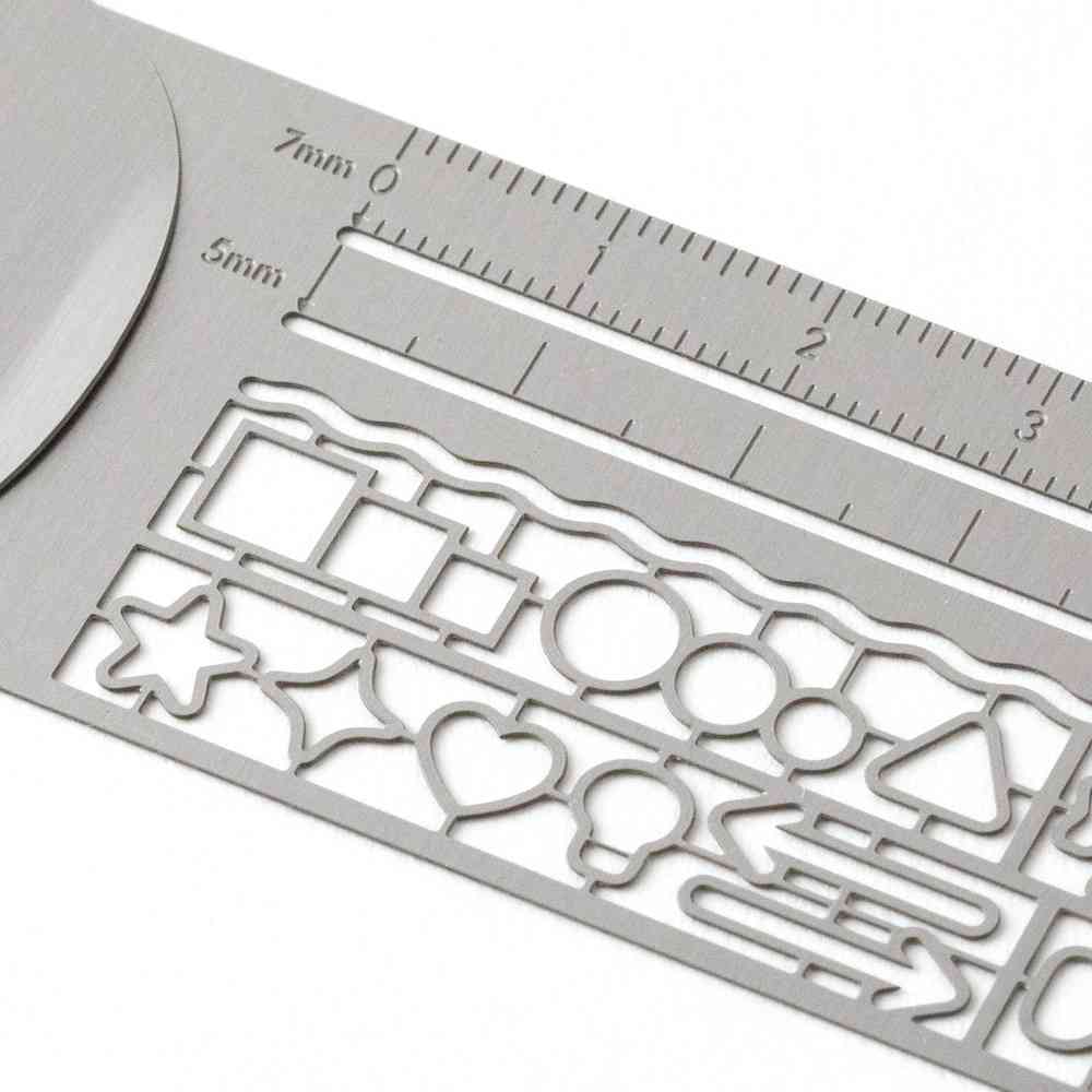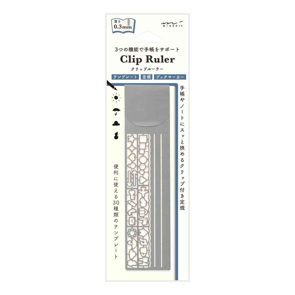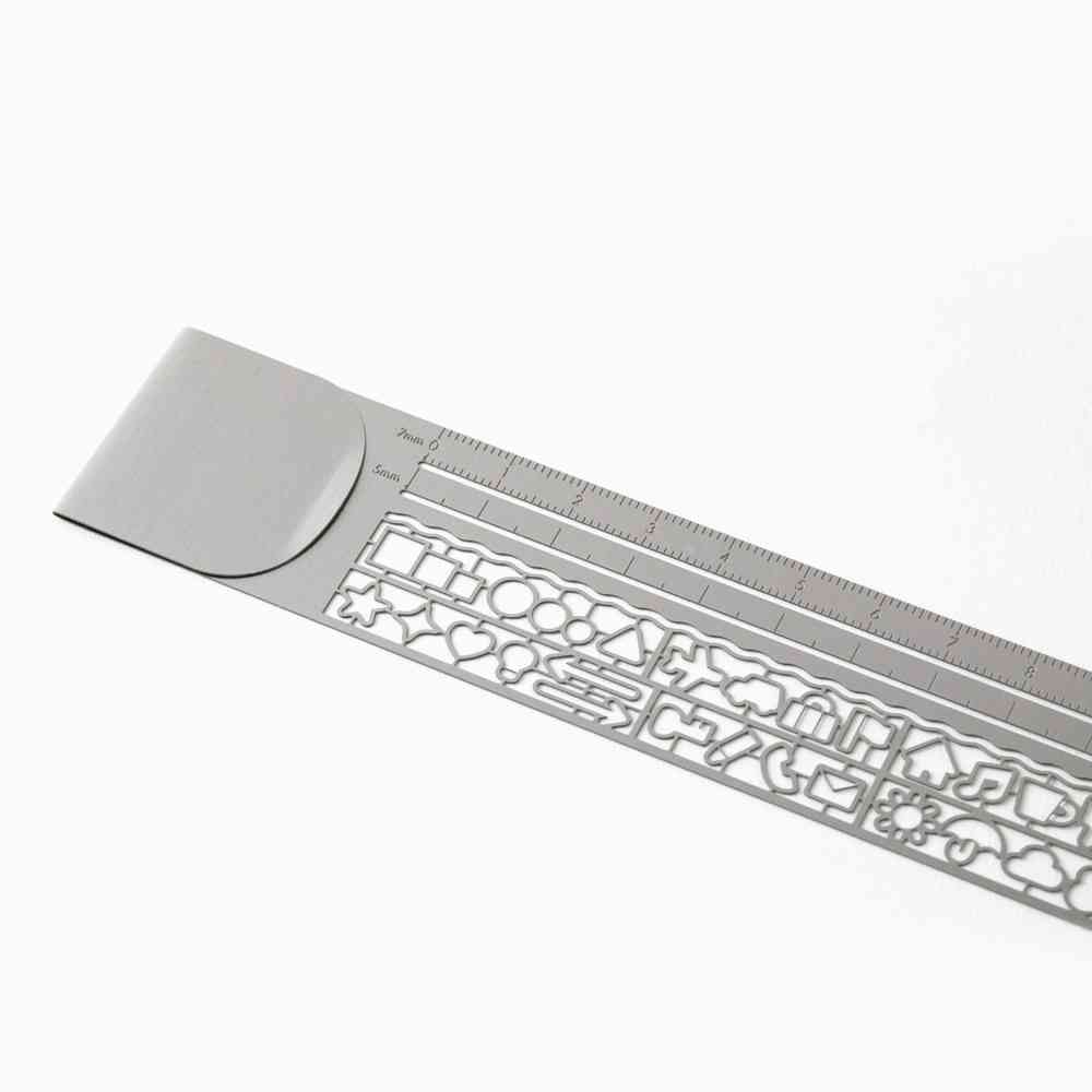 手帳やノートにクリップできる、テンプレート付き薄型定規です。