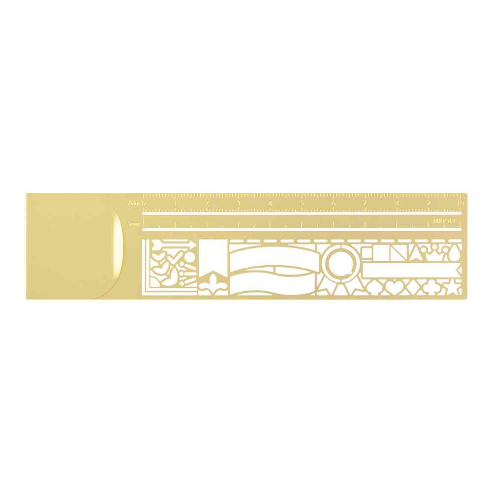 手帳やノートにクリップできる、テンプレート付き薄型真鍮定規です。