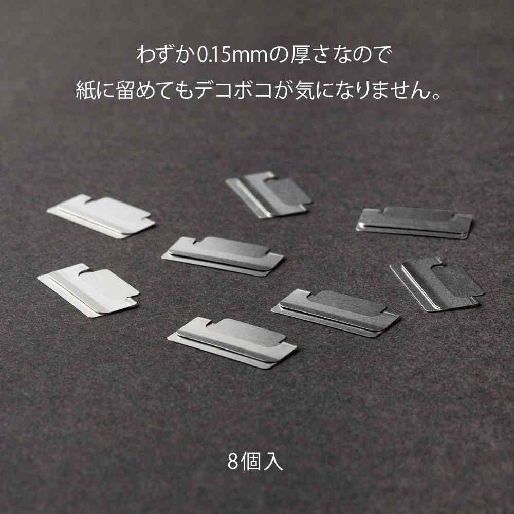 クリップ本体の厚みはわずか0.6mm、紙に留めてもデコボコが気になりません。