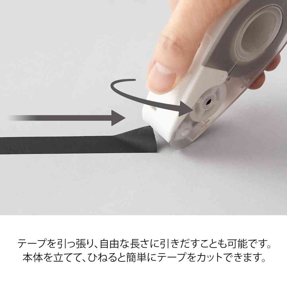 テープを引っ張り自由な長さに引きだすことも可能。テープ幅6mm~15mmの様々なサイズが使用できます。
