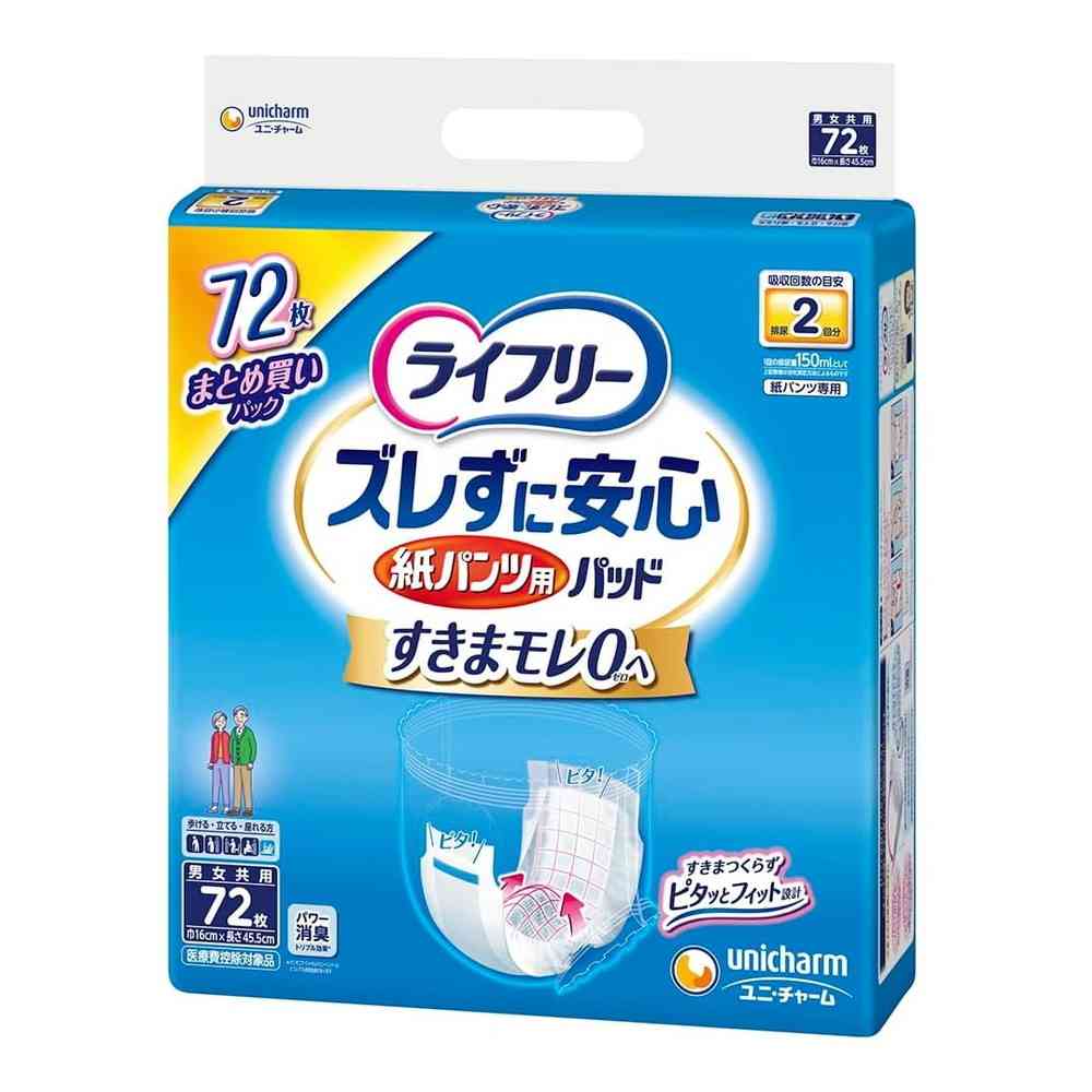 紙パンツ用パッドならズレ止めテープ搭載で吸収体が変形しフィットするからスキマができずにモレ安心!