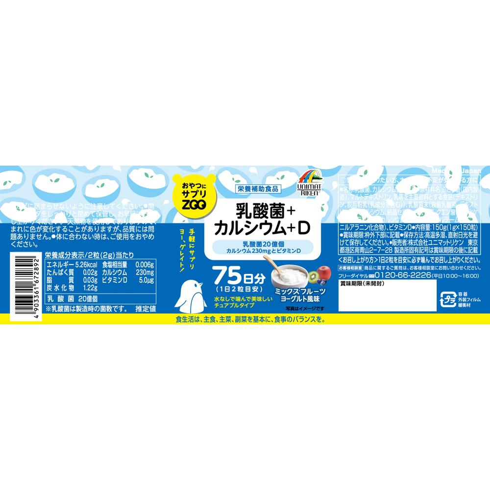 It is a mixed fruit yogurt flavored tablet that can take 2 billion lactic acid bacteria, 230 mg of calcium, and 5 μg of vitamin D with 2 tablets.