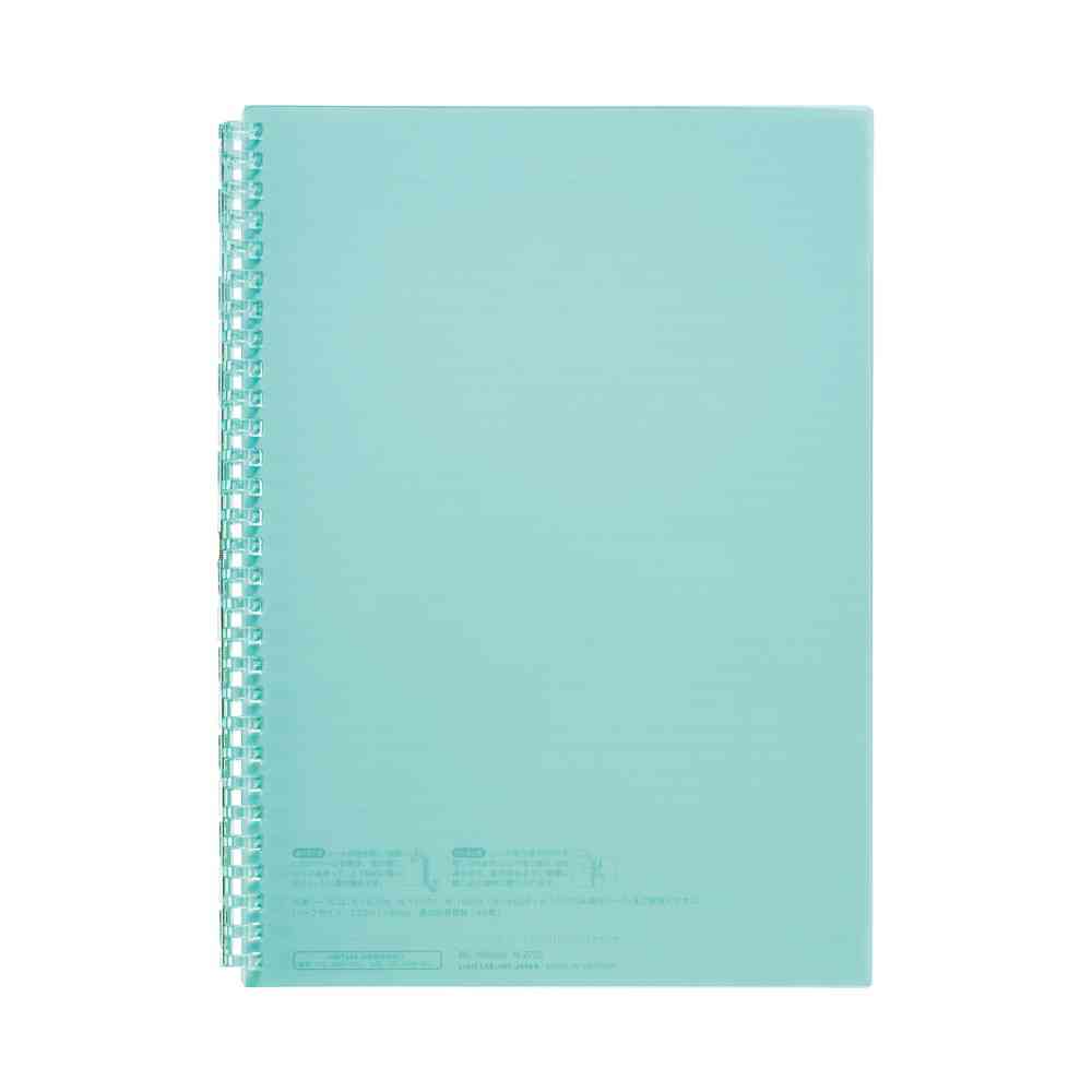 とじ具は表紙の色に合わせた色透明。360°折り返して使えるので省スペースで使いやすい。
