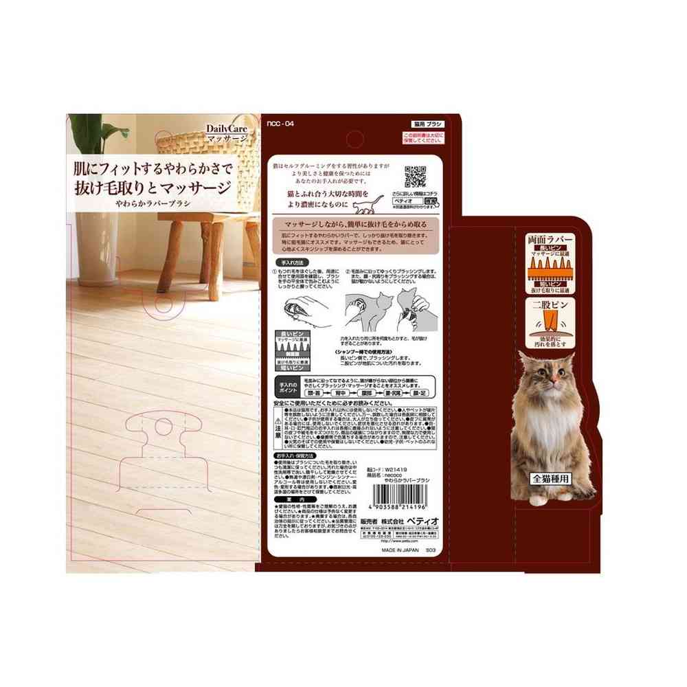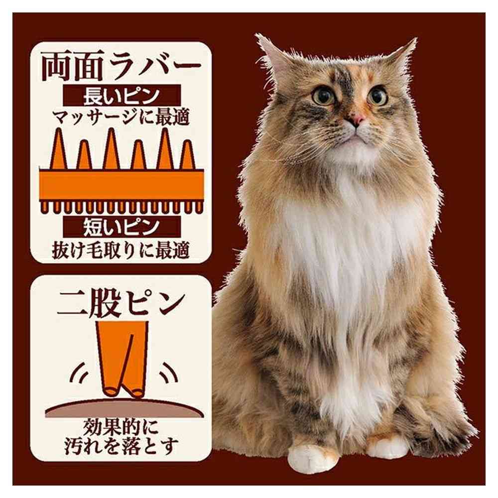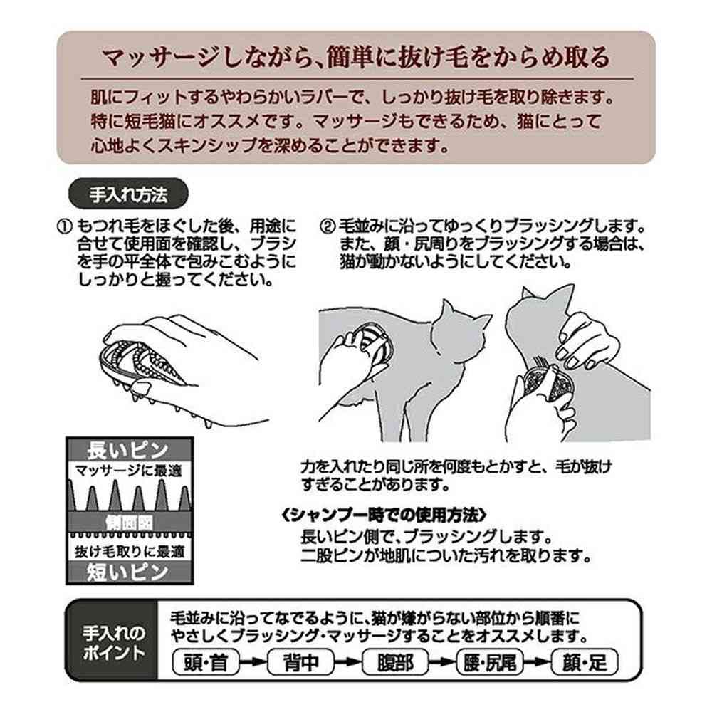 猫の肌に合わせたやわらかいラバーブラシ。
