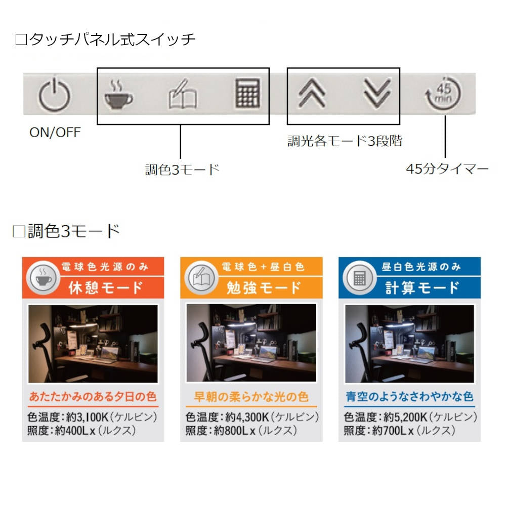 ○調色3モード 計算モード5200K、勉強モード4300K、休憩モード3100K
