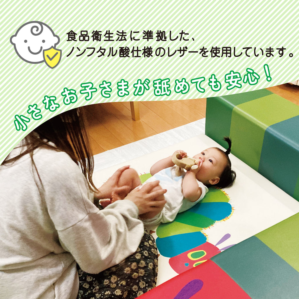 世界中で愛されているエリック・カールの代表作「はらぺこあおむし」の世界観と共に、子どもたちの成長「体育・知育・心育・食育」を楽しくサポートする遊具です。