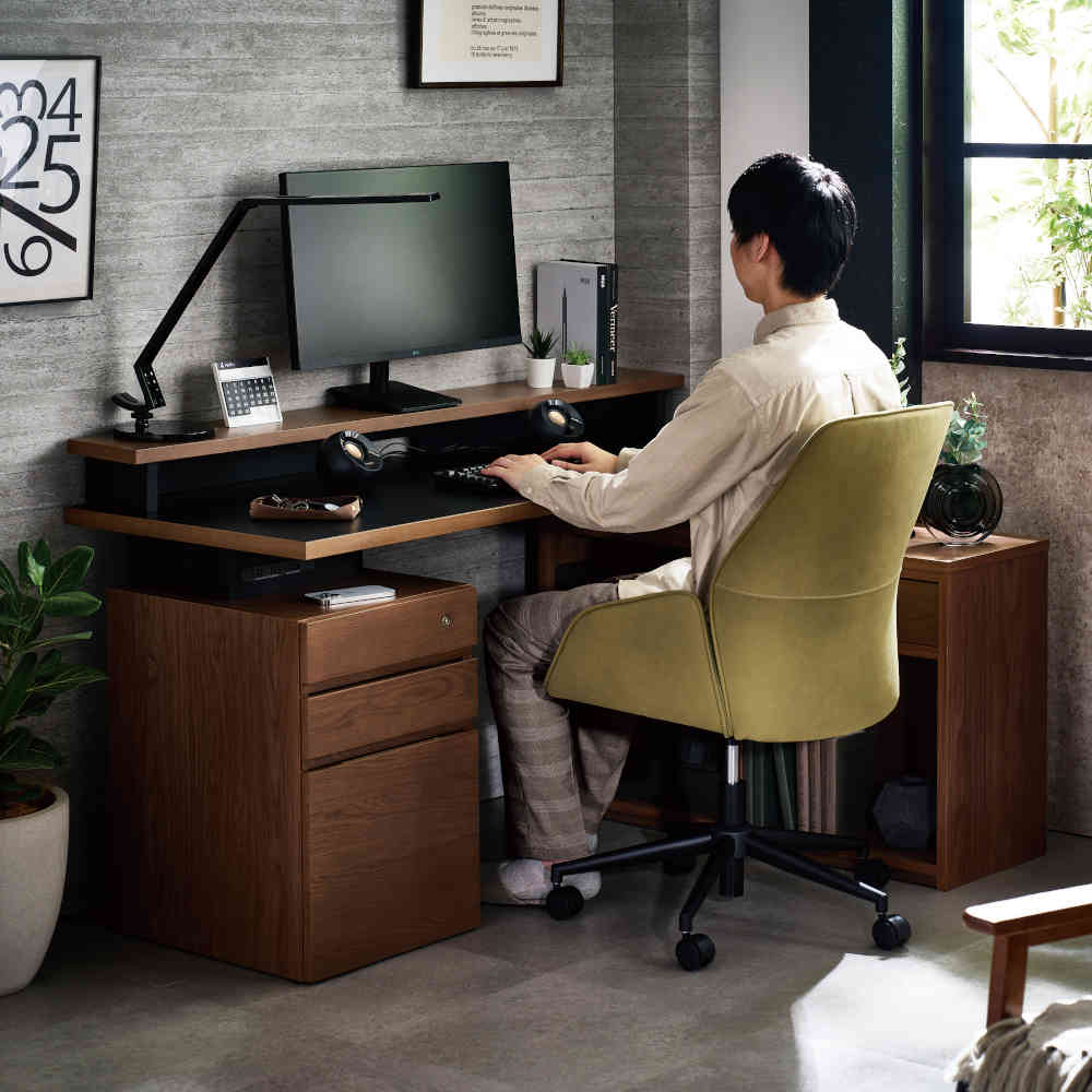 部屋のインテリアに合わせやすいデザインの回転チェアシリーズ。包み込まれるような座り心地が特徴です。