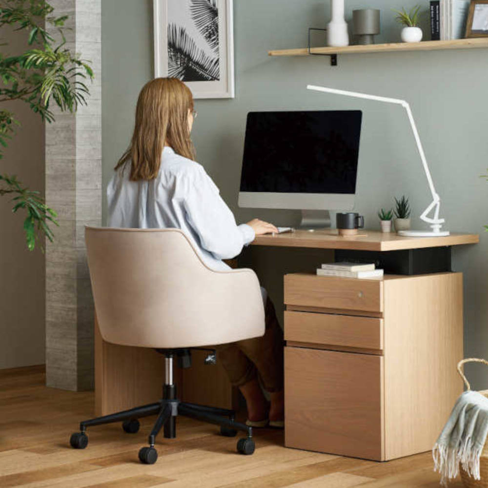 部屋のインテリアに合わせやすいデザインの回転チェアシリーズ。包み込まれるような座り心地が特徴です。