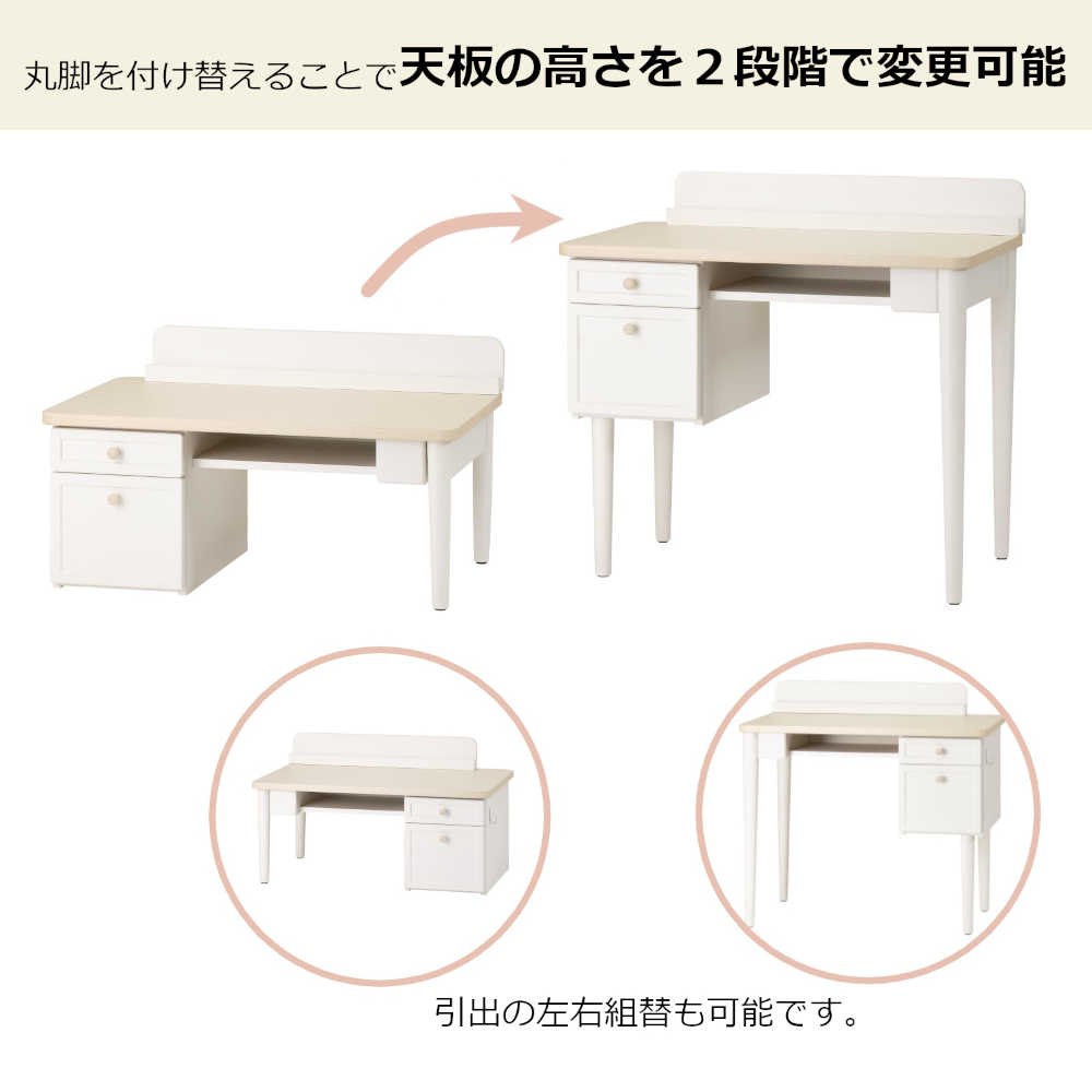 幼児期はキッズデスク、大きくなったら脚を付け替えて学習机にし、永く使えるデスク。