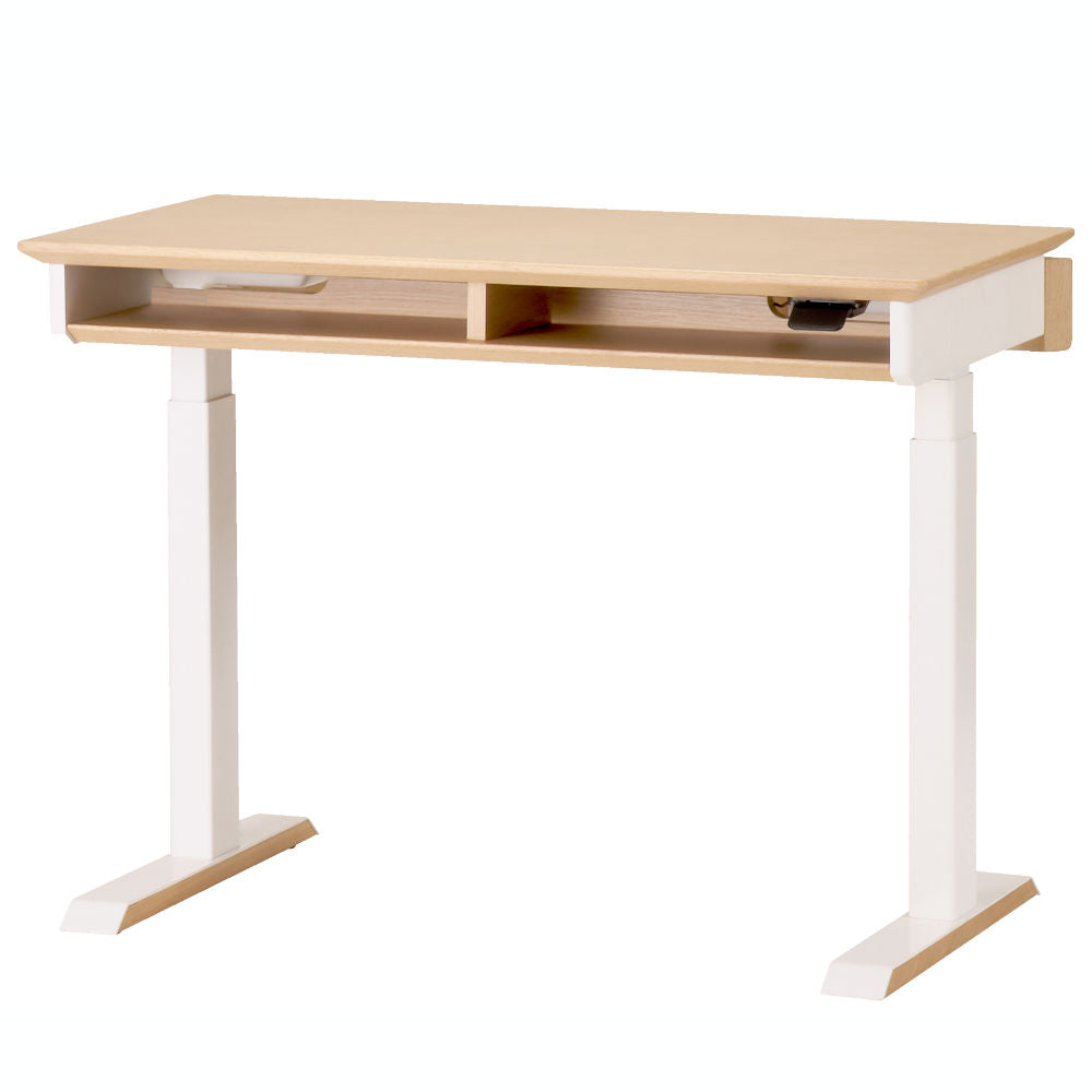 環境にやさしい素材「エコウッディ」を使用した、シンプルデザインの電動昇降デスク。