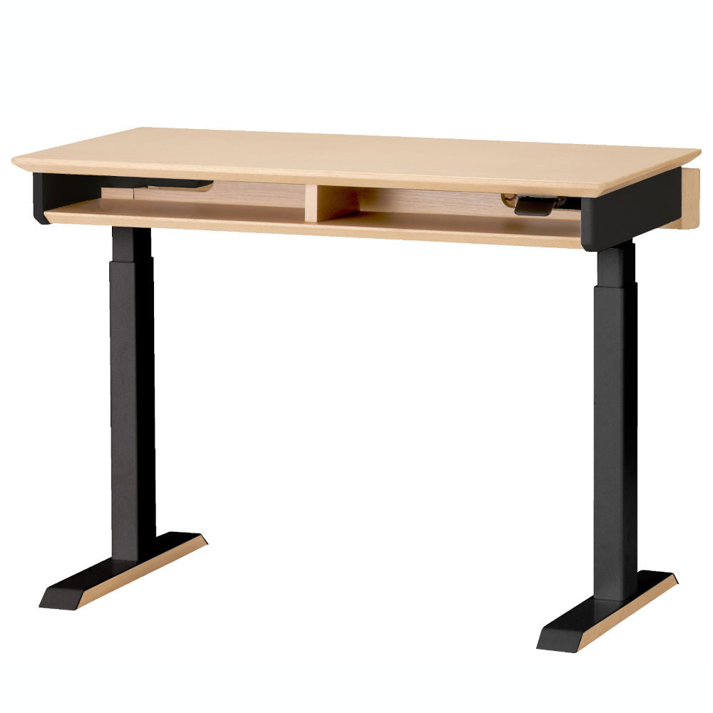 環境にやさしい素材「エコウッディ」を使用した、シンプルデザインの電動昇降デスク。