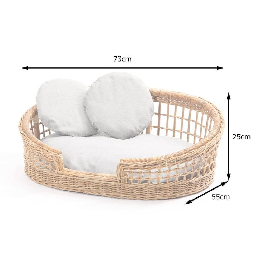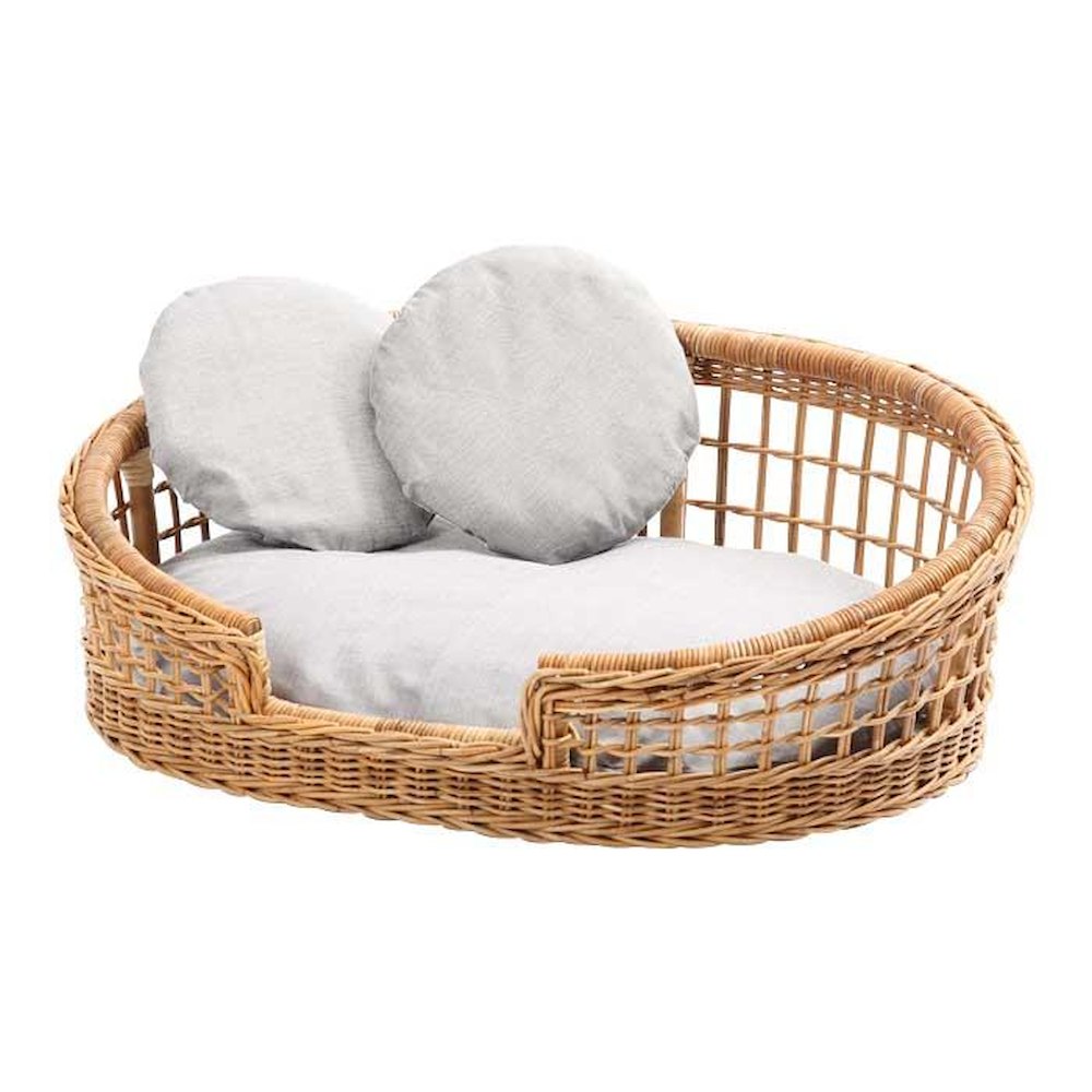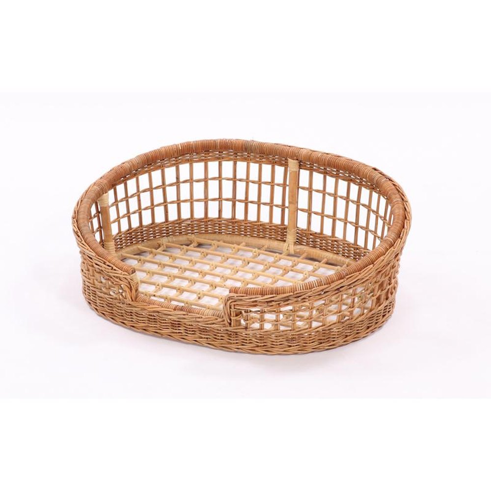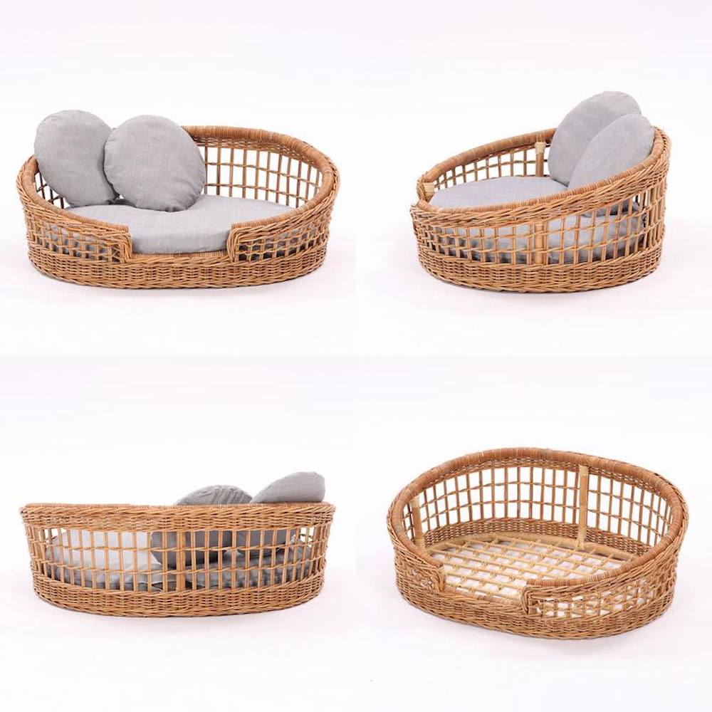 ラタンを使用した自然の風合いを味わえるペットベッド。 ※商品は完成品です。※自然な風合いや素材の温かみを味わっていただけるように、材料に皮付きの籐(とう)をそのまま使用しています。そのため、材料1本1本の色の違いや、黒ずみ、斑点の部分がございます。 また、籐(とう)の表面のところどころに傷のようにホーロー質がはがれた部分があります。これはトゲのある」節」を取りのぞいた削り跡で必ずあります。 これらは不良ではなく、天然素材特有の風合いによるものです。※自然素材を使用しハンドメイドで仕上げています。大きさ、色味、質感には若干の個体差がございます。予めご了承ください。ラタン製なので通気性が良く、また軽くて移動も楽々。ナチュラルテイストの優しさと温かみ溢れる風合い。ひとつひとつ丁寧に手編みによってつくられています。