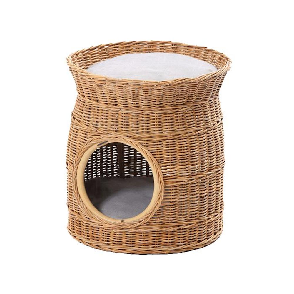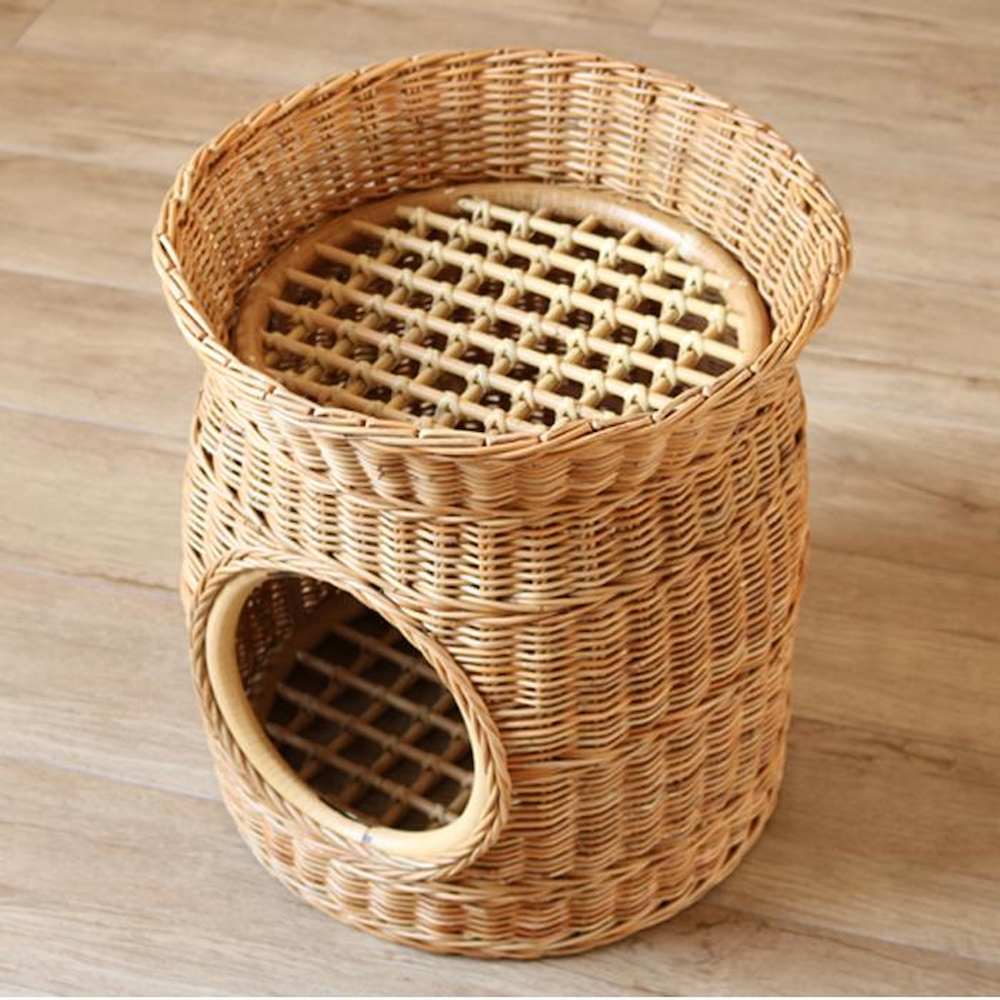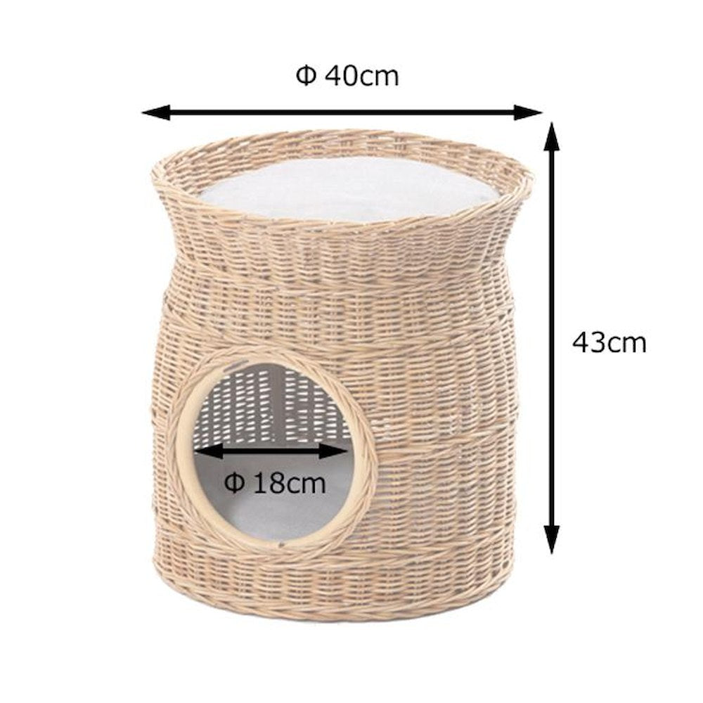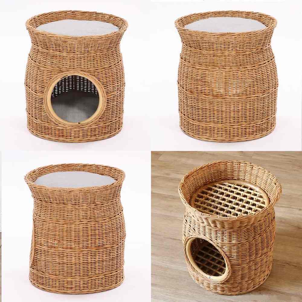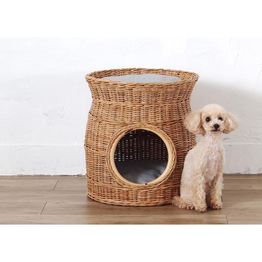 ラタンを使用した自然の風合いを味わえるペットハウス。 ※商品は完成品です。※自然な風合いや素材の温かみを味わっていただけるように、材料に皮付きの籐(とう)をそのまま使用しています。そのため、材料1本1本の色の違いや、黒ずみ、斑点の部分がございます。 また、籐(とう)の表面のところどころに傷のようにホーロー質がはがれた部分があります。これはトゲのある」節」を取りのぞいた削り跡で必ずあります。 これらは不良ではなく、天然素材特有の風合いによるものです。※自然素材を使用しハンドメイドで仕上げています。大きさ、色味、質感には若干の個体差がございます。予めご了承ください。ラタン製なので通気性が良く、また軽くて持ち運びが楽々。ナチュラルテイストの優しさと温かみ溢れる風合い。ひとつひとつ丁寧に手編みによってつくられています。