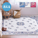 どこか東洋を感じさせるような花柄の絨毯風デザイン。その細やかなデザインを、転写プリントで美しく表現したなめらかフランネルラグ。