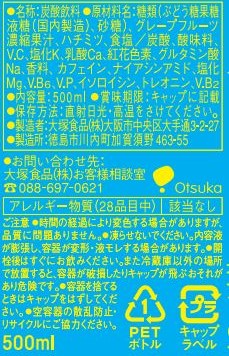 Carbonic acid, acidulant, VC, potassium chloride, calcium lactate, safflower pigment, sodium glutamate, fragrance, caffeine, niacinamide, Mg chloride, V.B6, VP, isoleucine, threonine, V.B2