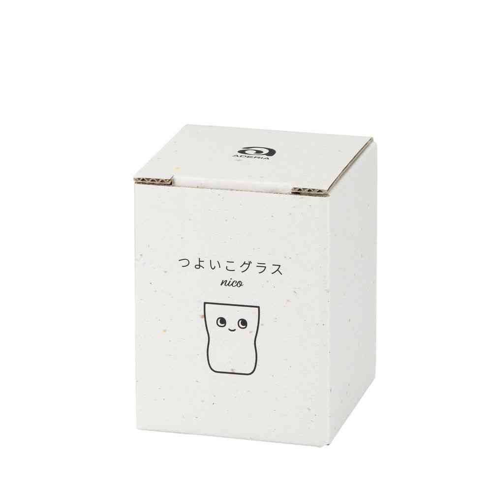 毎日の生活の中で小さな手やくちびるが硝子という「本物」に触れ、豊かな心がはぐくまれますように。にっこり顔の小さなグラス『つよいこグラスnico』には、そんな想いが込められています。