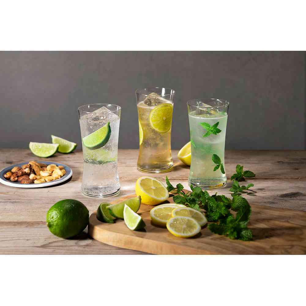 お酒の付け合わせによく使われるライム、レモン、ミントが最初からグラスに入っている事で、少しこだわったお酒のシーンを面白く賑やかに演出します。