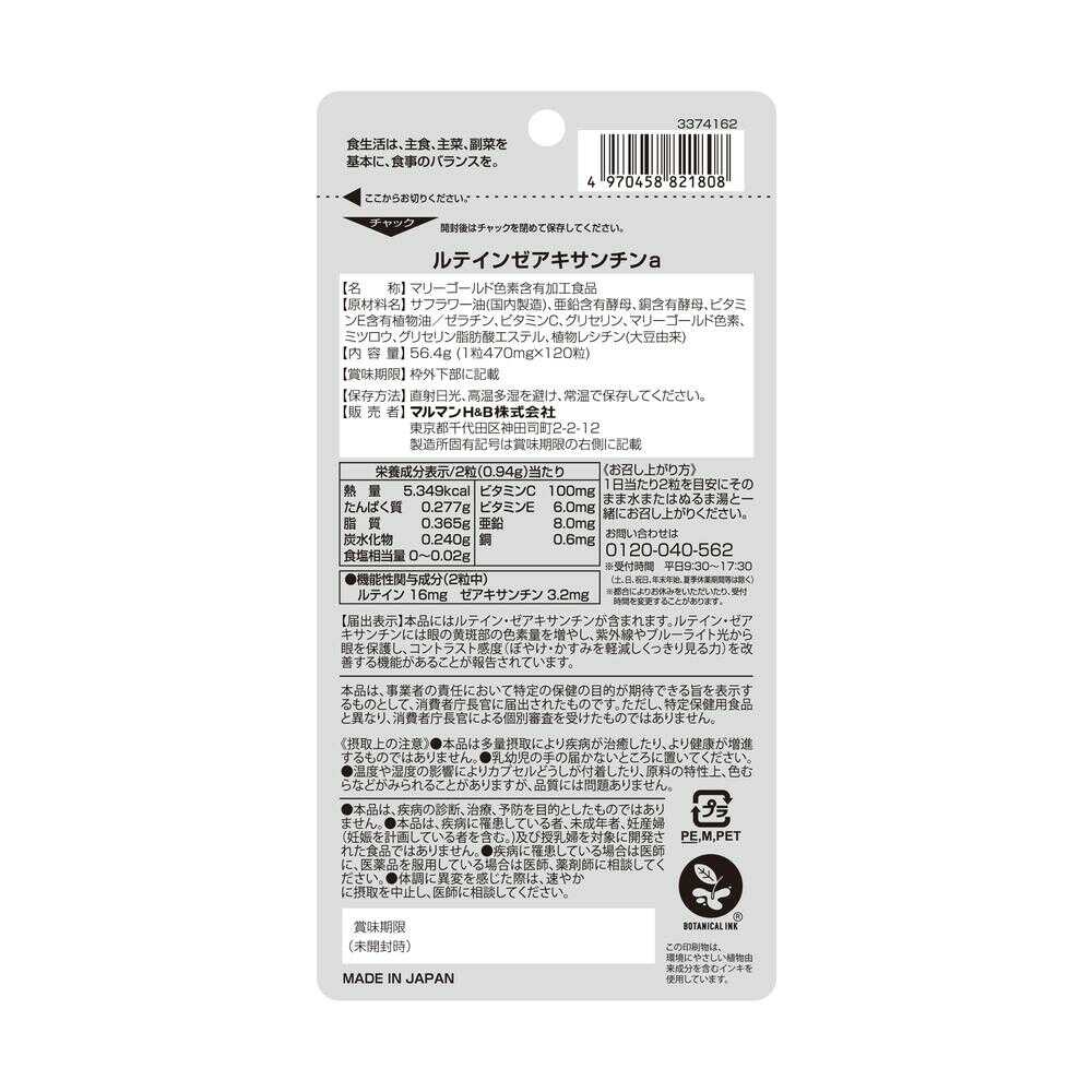 ルテイン16mg、ゼアキサンチン3.2mg