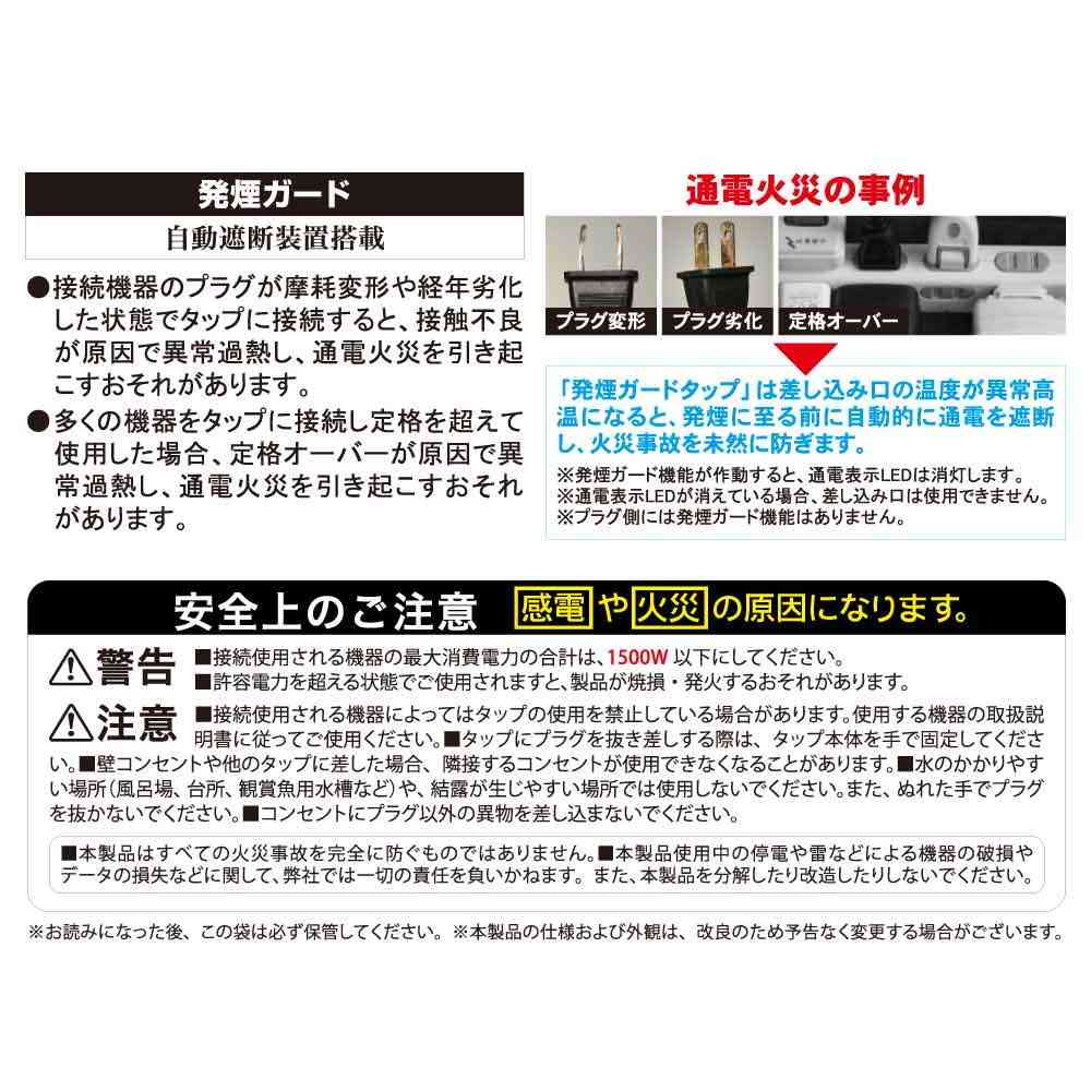 ※ プラグ側には発煙ガード機能はありません。