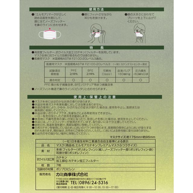 Elmore Catechin Mask Catechin Premium Mask Nonwoven Mask Pleated Mask 4-Layer Structure 99% Cut Filter Normal Size Surgical Mask Anti-Virus Processing Filter Made in Japan Domestic