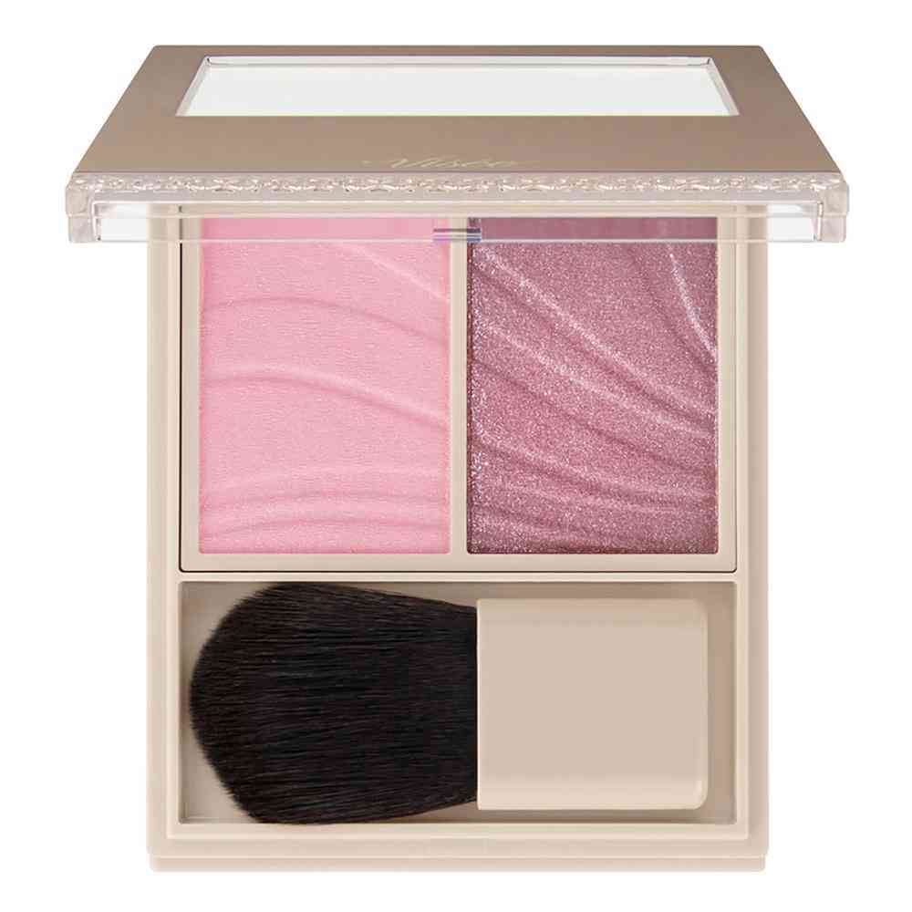 ベースで頬を整えて色を重ね、花びらのような血色感×立体ツヤを生み出す。