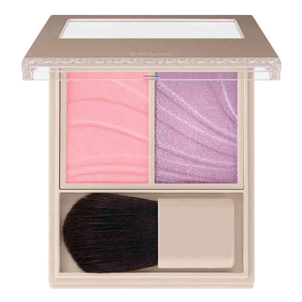 ベースで頬を整えて色を重ね、花びらのような血色感×立体ツヤを生み出す。