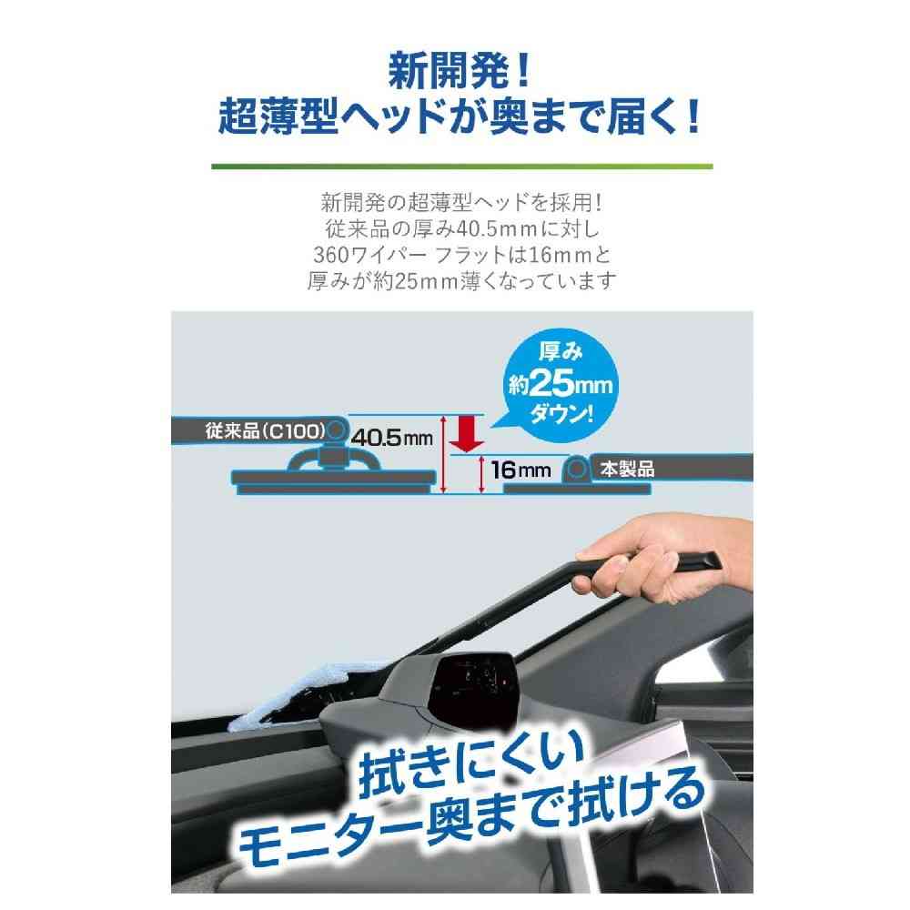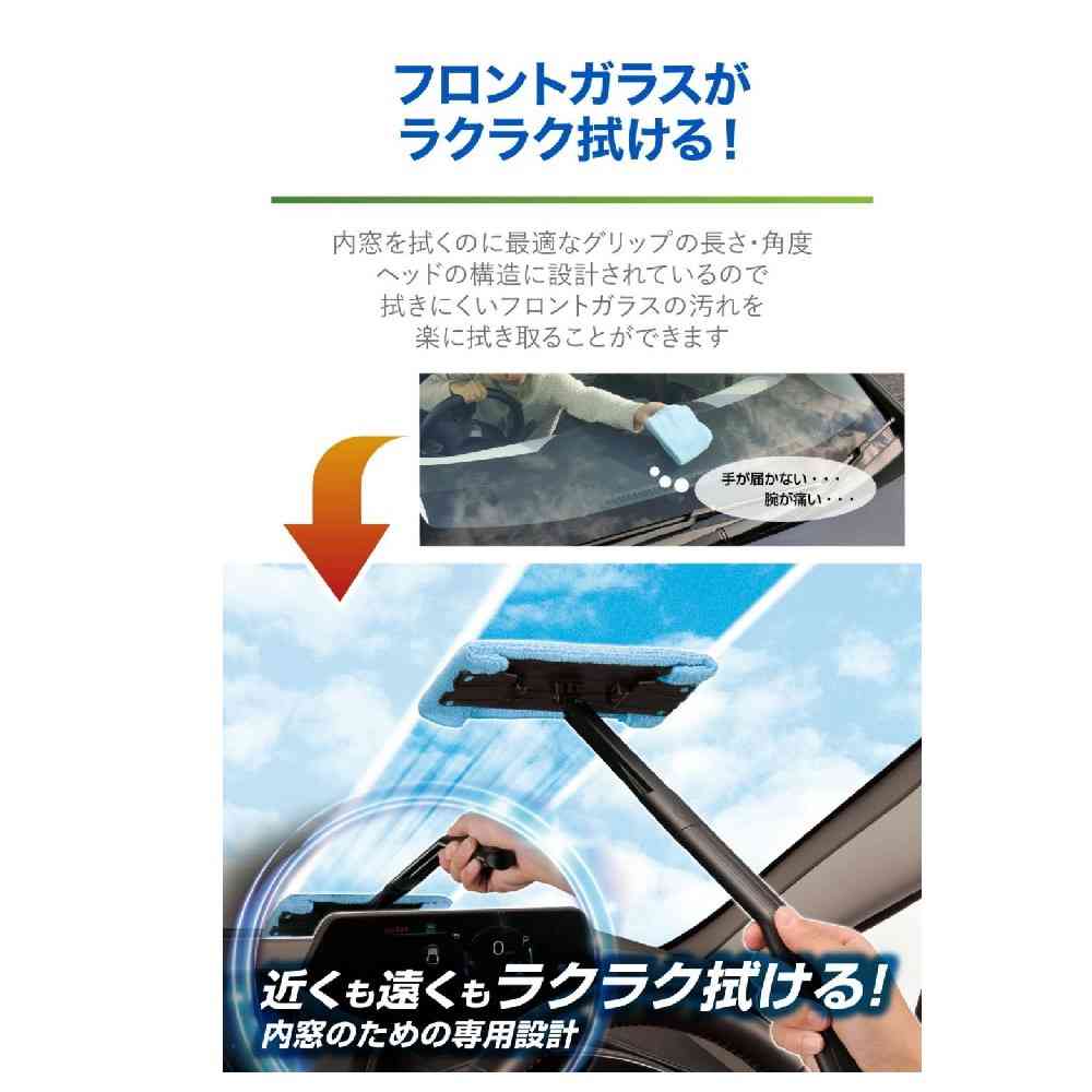 ・内窓を拭くのに最適なグリップの長さ・角度、ヘッドの構造に設計されているので、拭きにくいフロントガラスの汚れを楽に拭き取ることができます。