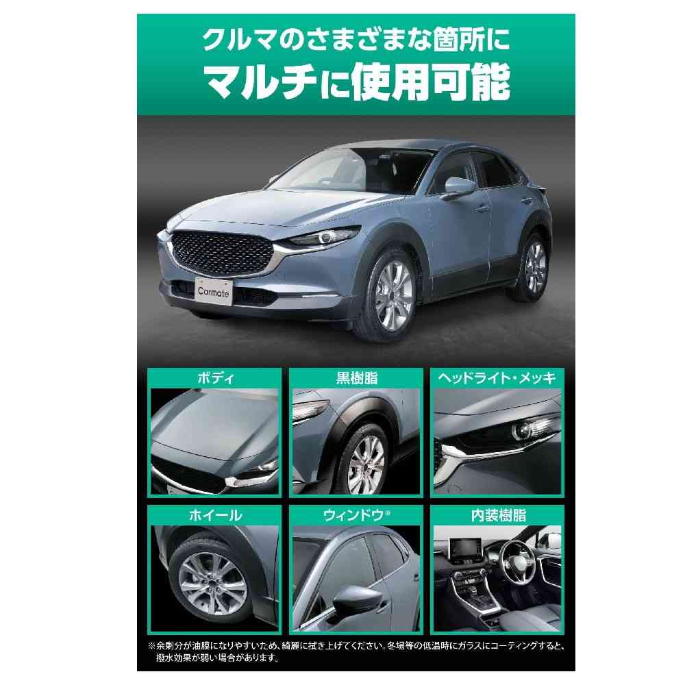・クルマのあらゆる箇所に使用可能:ボディ、黒樹脂(未塗装樹脂)、ヘッドライト、メッキパーツ、ホイール、内装樹脂、ウィンドウ※