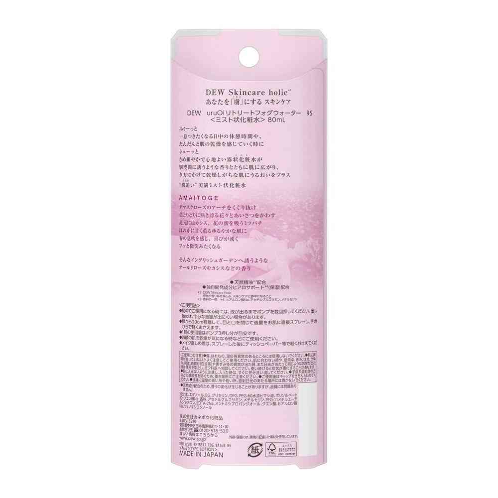 水、エタノール、BG、グリセリン、DPG、PEG-60水添ヒマシ油、ポリソルベート20、クエン酸Na、香料、アセチルグルコサミン、メチルセリン、PEG-11メチルエーテルジメチコン、EDTA-2Na、メントキシプロパンジオール、クエン酸、ヒアルロン酸Na、フェノキシエタノール