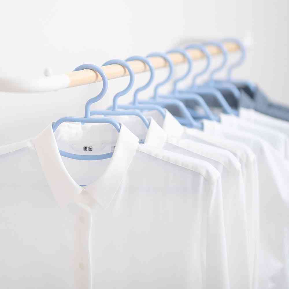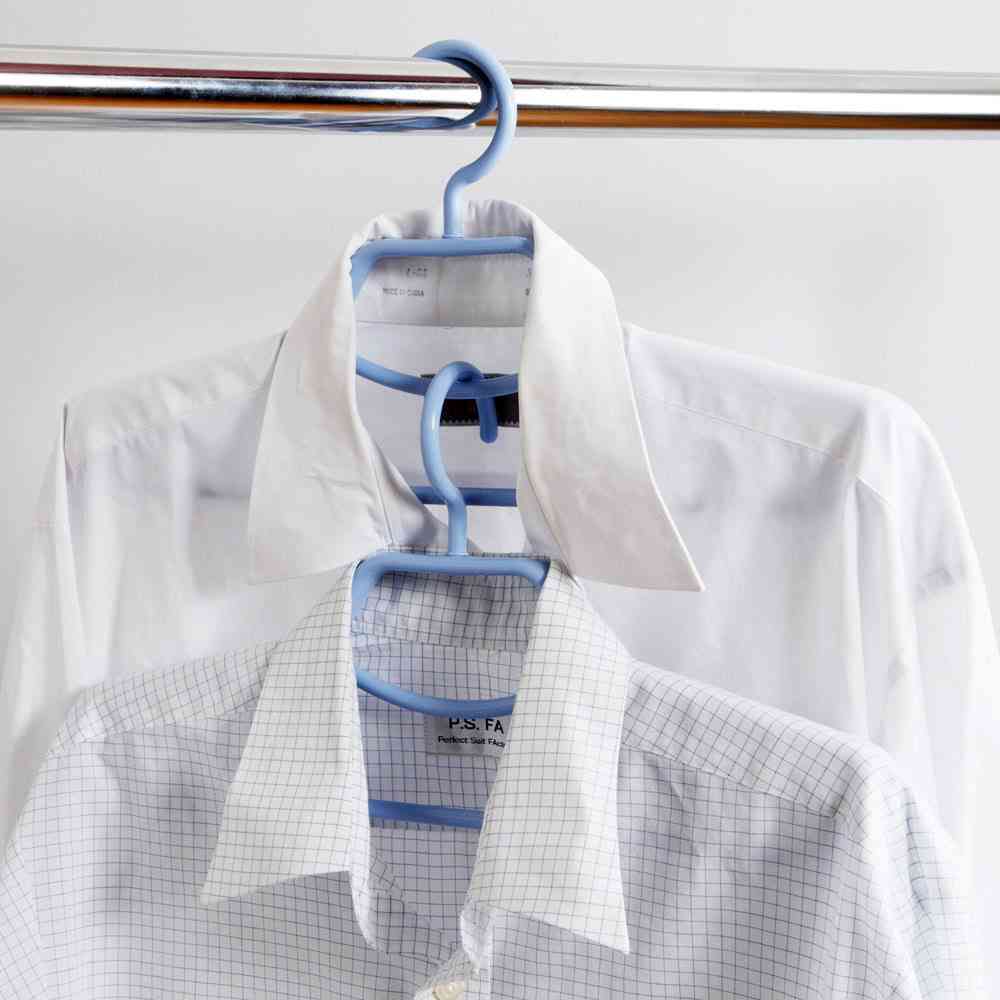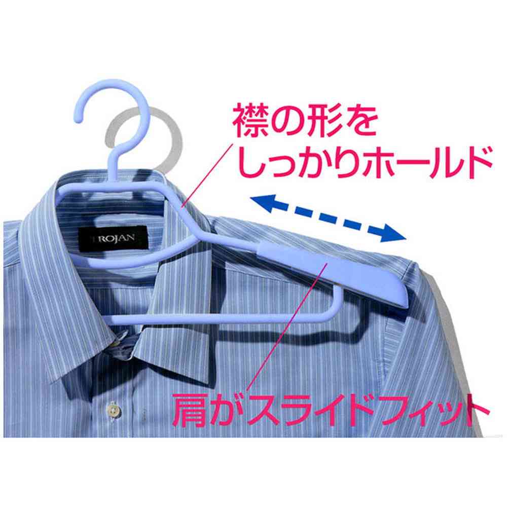 肩幅をスライドさせてサイズに合わせ収納できる山型形状で襟付きのYシャツなど襟を固定し便利