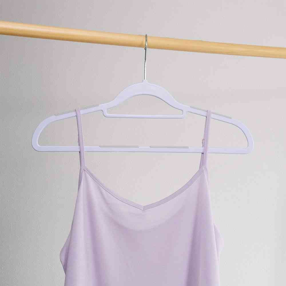 ラバー加工で洋服が滑り落ちにくいスリムなハンガーで収納効率が良い