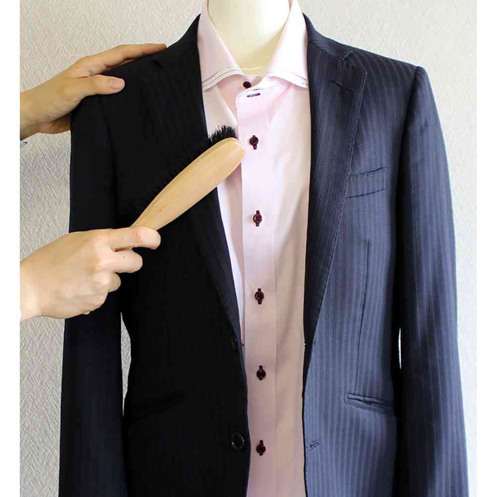 衣類の生地に付着したホコリや花粉の除去に天然毛なので静電気の発生を抑えます