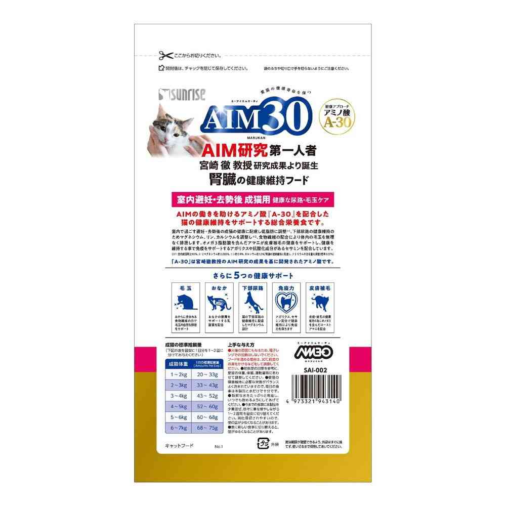 Comprehensive nutritional food that supports the health maintenance of cats containing amino acid "A-30"
