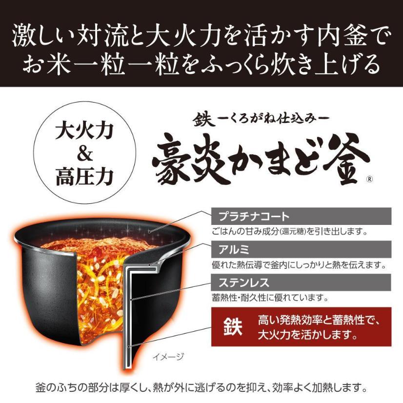 ■蓄熱性・発熱効率・熱伝導に優れた「鉄(くろがね仕込み)豪炎かまど釜」※内釜3年保証つき