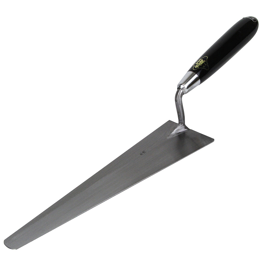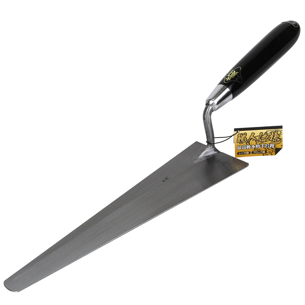 ブロックを積む際のモルタルのすくい、押さえ、はみ出したモルタルの掻き出し作業に適した形状です。