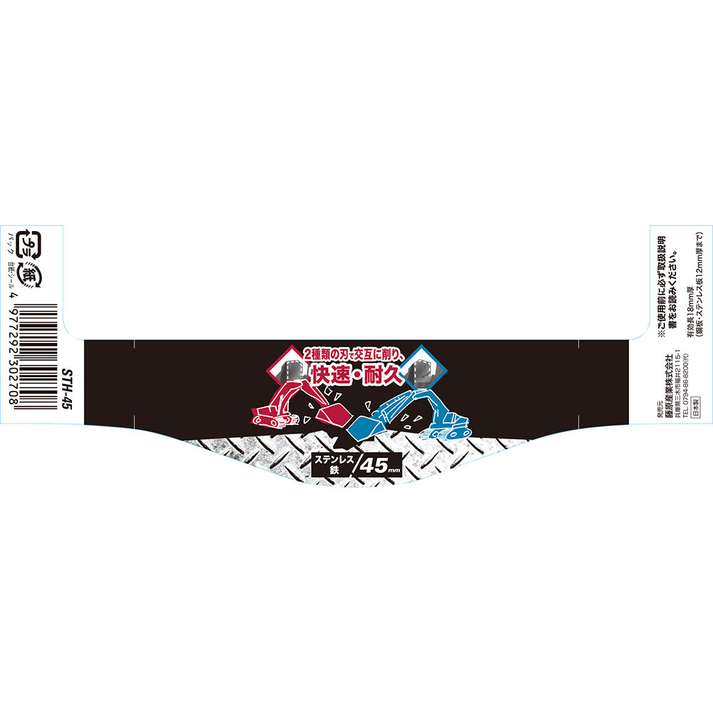 鋼板12mm、ステンレス、塩ビ、FRPなどの穴あけに使用します。