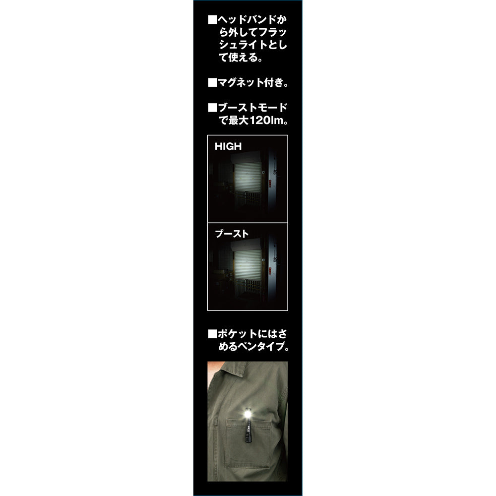 2Wayタイプ、ヘッドライトとしてもフラッシュライトとしても使用できます。