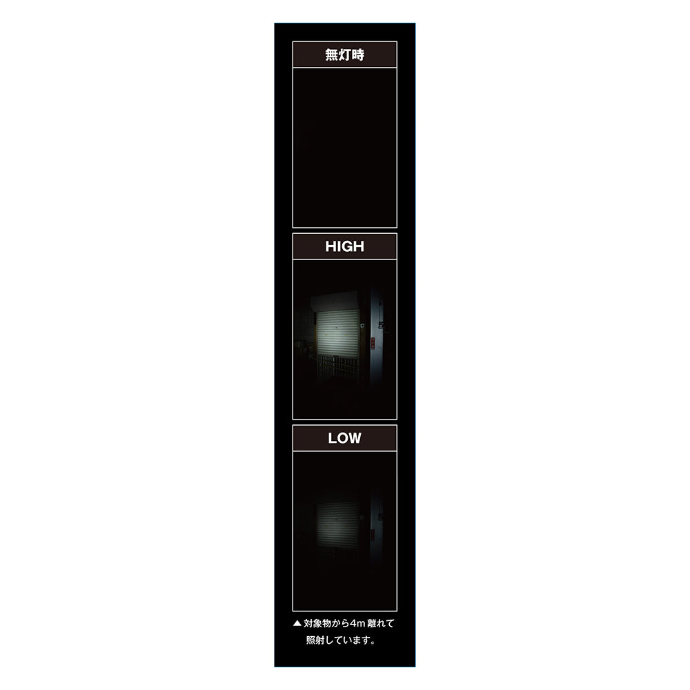 ●連続点灯時間:1.5時間(High)/13時間(Low)/230時間(点滅)。