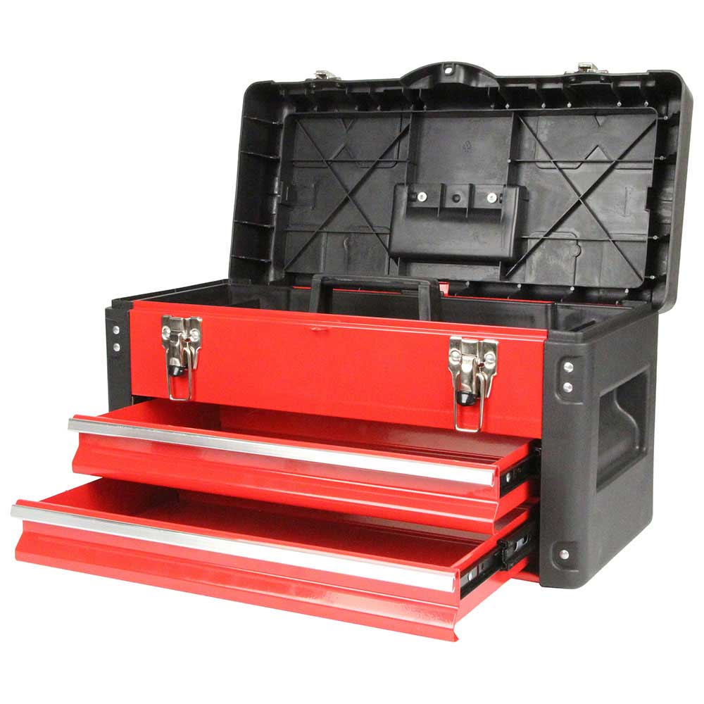 スチールと樹脂による新しい組み合わせ、2段引出しの付いたツールボックスです。