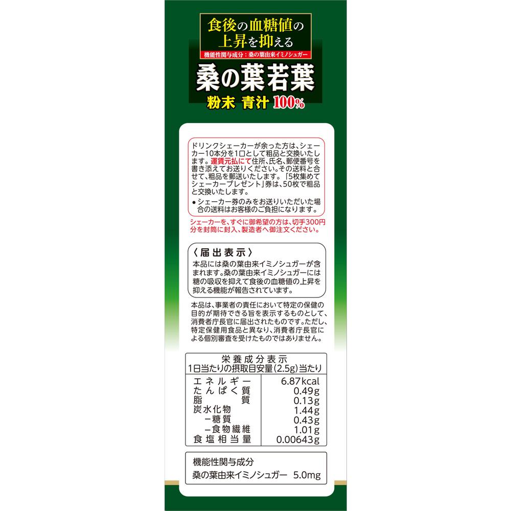 Ingredients: Mulberry Leaf Nutrients (Analysis for 2.5g of powder)