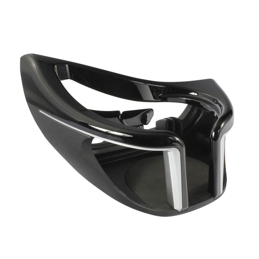 ●内装に合わせた黒ツヤ+革シボ調で一体感を。シルバーのアクセントで高級感を演出。