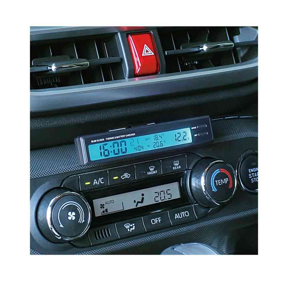●時計(時・分・秒※)・カレンダー(月・日・曜日※)・車内温度・車外温度・車両電圧の同時表示が可能です。※秒と曜日はどちらかを選択して表示します。