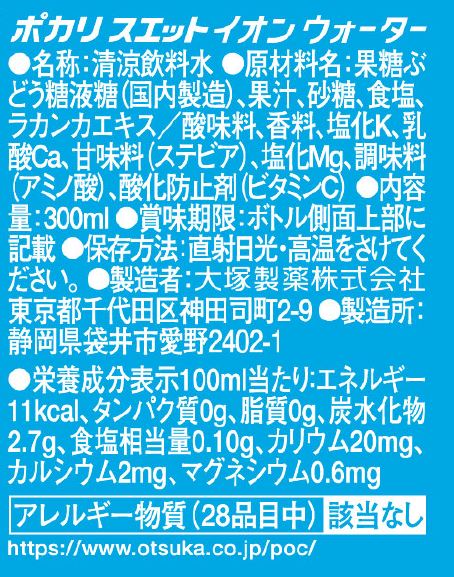 Nutrients (per 100ml) Energy: 25kcal, protein/fat: 0g, carbohydrates: 6.2g, sodium: 49mg, potassium: 20mg, calcium: 2mg, magnesium: 0.6mg