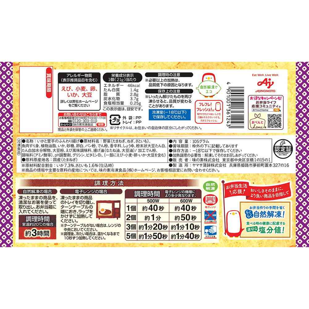 いかと里芋をふんわりとした白身魚で包んで揚げた、お弁当のおかずです。